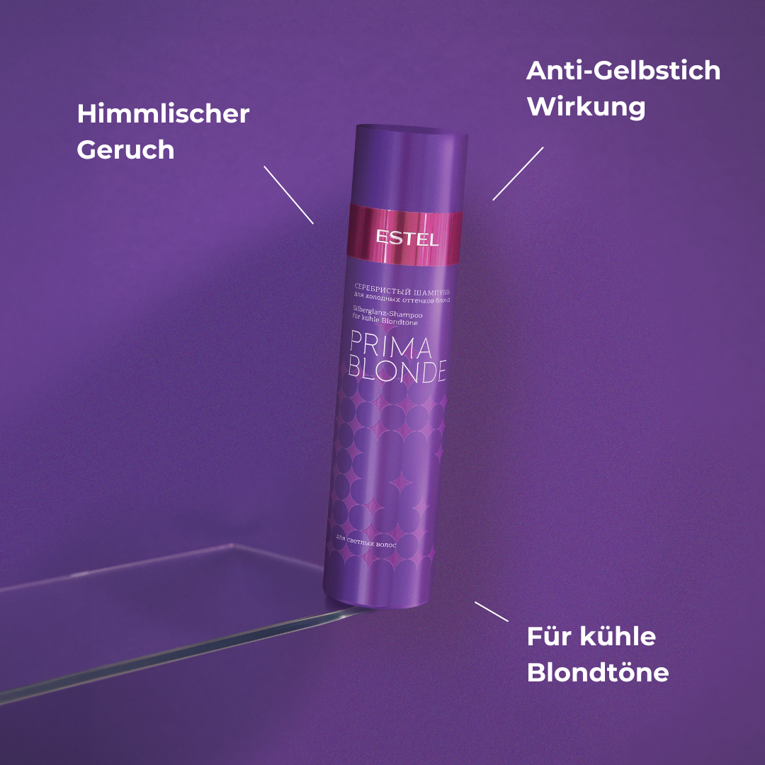 PRIMA BLONDE Szampon nabłyszczający do chłodnych odcieni blondu — utrzymuje efekt "prosto od fryzjera" na dłużej. Wysokiej jakości pigmenty delikatnie osadzają się na włosach, odświeżając i wzmacniając chłodne odcienie. Szampon łagodnie oczyszcza i skutecznie neutralizuje niepożądane żółte refleksy po rozjaśnianiu lub blondowaniu.